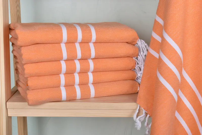Organic cotton/linen fiber composition ensures exceptional absorbency and softness, resulting in high-quality Turkish towels. Characterized by a 40x71 inches dimension and 430 grams weight, these handmade items may exhibit slight variations of up to 1-2.5 cm due to their handcrafted nature. Embroidery customization, pre-shrunk status, and detailed shipping/return terms are elaborated in the technical specifications.