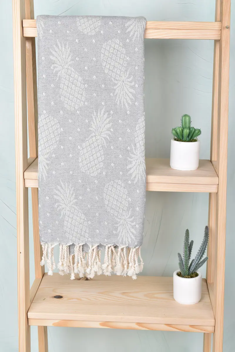 The Turkish towel is characterized by its composition of organic cotton and linen, ensuring a high degree of absorbency. Resulting in a towel that is both durable and lightweight, each towel is meticulously handwoven on a loom, allowing for minor variations in dimensions and weight, typically within a tolerance of 1-2.5 cm. These towels measure 40x79 inches and weigh approximately 350 grams, providing a substantial size for various uses.