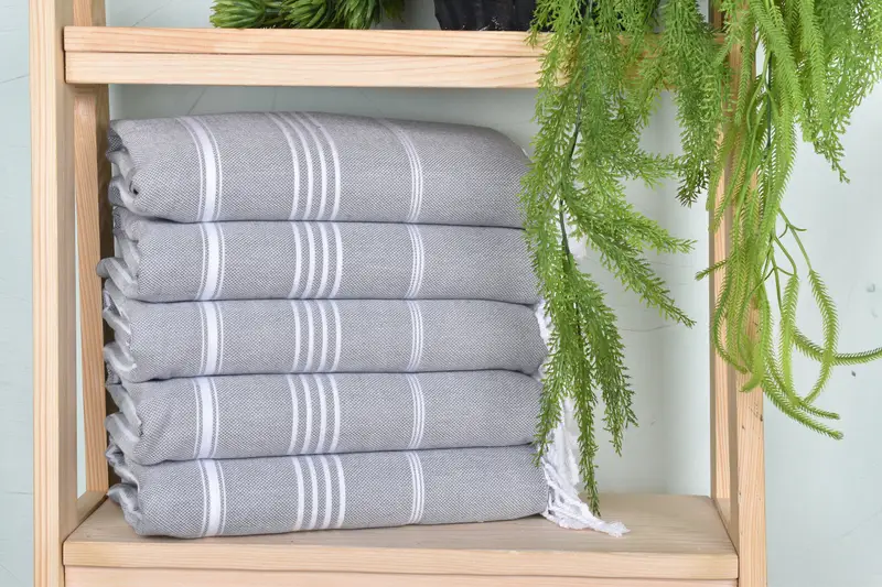 Characterized by a blend of organic cotton and linen, these towels ensure durability and breathability, resulting in a lightweight yet robust texture. Measuring 40x71 inches with a weight of 280 grams, each piece is handcrafted, allowing a tolerance of up to 1-2.5 cm in size.