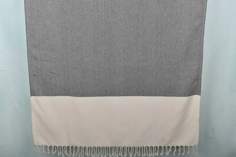 The Turkish beach towel is characterized by a fiber composition of organic cotton and linen, ensuring exceptional absorbency and softness. Measuring 36x71 inches and weighing 400 grams, it exhibits slight variances due to hand-weaving, typically within a 1-2.5cm tolerance range. Embroidery customization is available for personalization, with specific instructions on font and placement to be provided. Pre-shrunk prior to first use, these towels can be machine washed at 30 degrees and air- or dryer-dried. Delivery is expedited with options for DH...