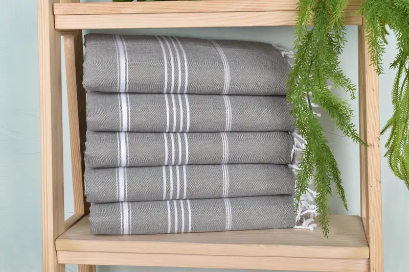 Characterized by a blend of organic cotton and linen, the striped towel ensures both durability and softness. The towel measures 40x71 inches, weighing 280 grams, with slight variations due to its hand-weaving process. Each towel is pre-shrunk, enhancing its longevity.