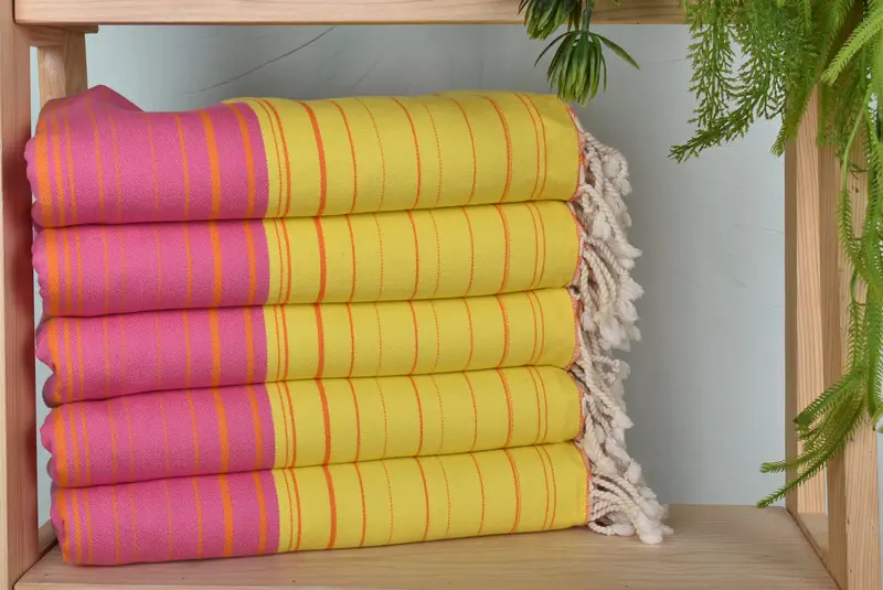 The striped towels are manufactured from organic cotton and linen, ensuring superior absorbency and durability. Characterized by a length of 70 inches and a width of 40 inches, with a weight of 400 grams, these towels exhibit a slight variance due to hand-weaving, typically within 1-2.5cm. Embroidery customization is available, allowing for names, initials, or logos to be added to various types of towels. Additionally, the towels are pre-shrunk, eliminating the need for a first-time wash. Orders can be personalized; however, they are non-return...