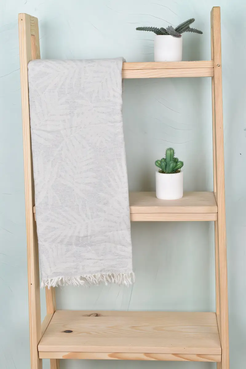 The towels are composed of organic cotton and linen, ensuring a lightweight and durable product while maintaining high absorbency. Characterized by a length of 40 inches and a width of 63 inches, these towels weigh approximately 290 grams. The handmade nature of the towels results in slight variations in size and weight, typically within a tolerance of 1-2.5 centimeters.