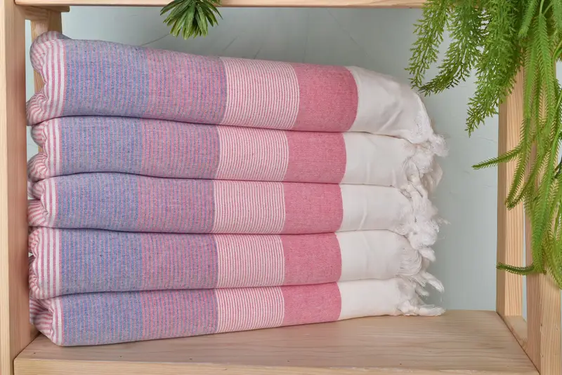 The beach towels are characterized by their organic cotton/linen fiber composition, ensuring exceptional absorbency and durability. Resulting in a highly absorbent and breathable product, the towels' weight of 260 grams is a testament to their quality. Dimensions are specified at 40 inches by 67 inches, with minor variations possible due to hand-weaving.
