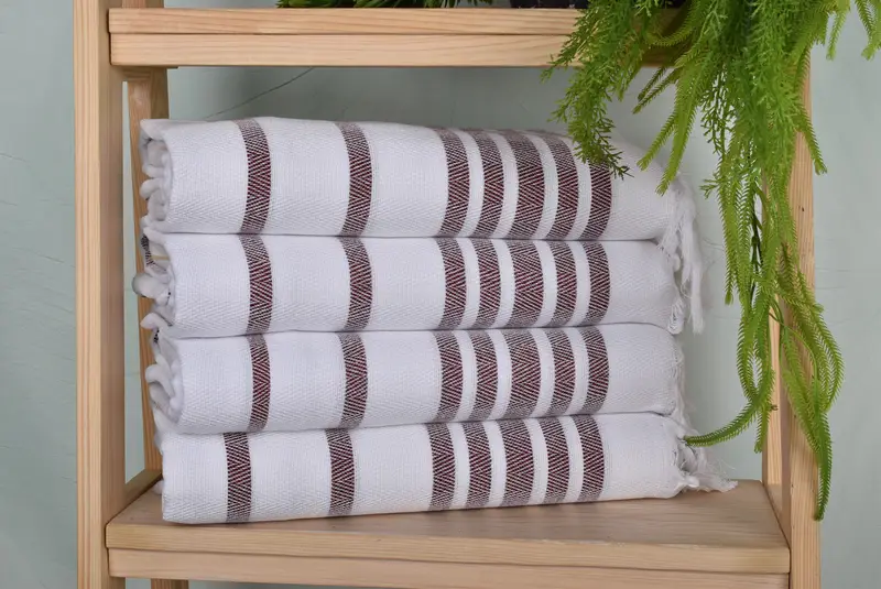 Our Turkish Tea Towels are characterized by their composition of organic cotton and linen, ensuring superior absorbency and durability. Each piece measures precisely 36 inches in length and 24 inches in width, with a weight of 120 grams. Variations of up to 2.5 centimeters are possible due to the hand-weaving process.