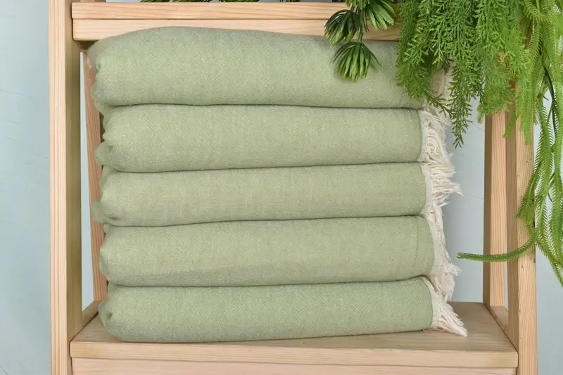 The hand towels are woven from organic cotton and linen, ensuring high absorbency and durability. Characterized by a dimension of 40x24 inches and a weight of 100 grams, the measurements may vary slightly due to their handmade nature. Towels are pre-washed before first use and can be washed at 30 degrees in 600 cycles, supporting both air and dryer drying.