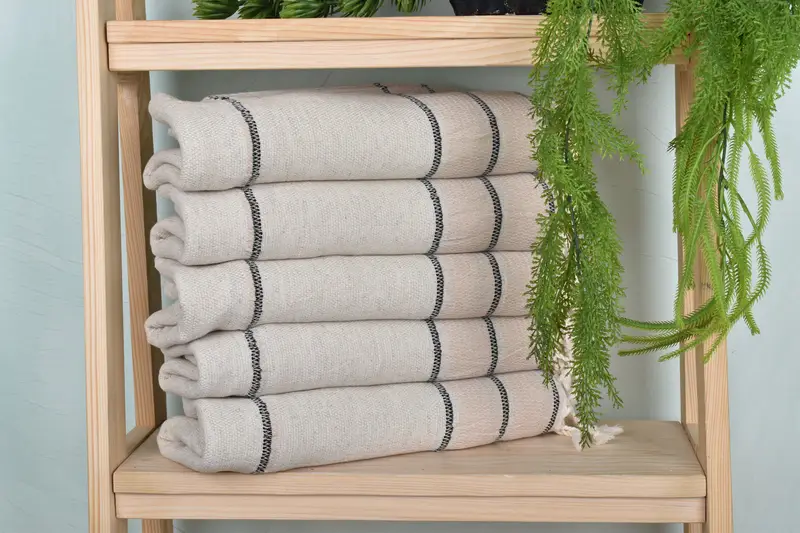 Organic cotton/linen construction ensures exceptional durability and absorbency, resulting in a lightweight yet robust product suitable for various uses. The towel dimensions are 36x71 inches and it weighs 430 grams, with a handmade nature causing variations of up to 1-2.5 cm. Pre-shrunk for optimal fit and ready for personal customization through embroidery, each item can be tailored with names, initials, or logos in selected fonts and thread colors.