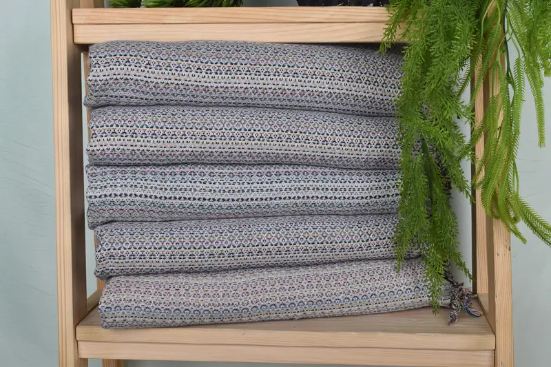 Characterized by an organic cotton and linen blend, the dish towel offers high absorbency and durability, ensuring long-lasting use in kitchen environments. Measuring 38x18 inches and weighing 120 grams, the hand-woven product may have slight variations due to its handmade nature. Pre-shrunk status and customization options are available, including embroidery of names, initials, or logos with a choice of fonts and thread colors.