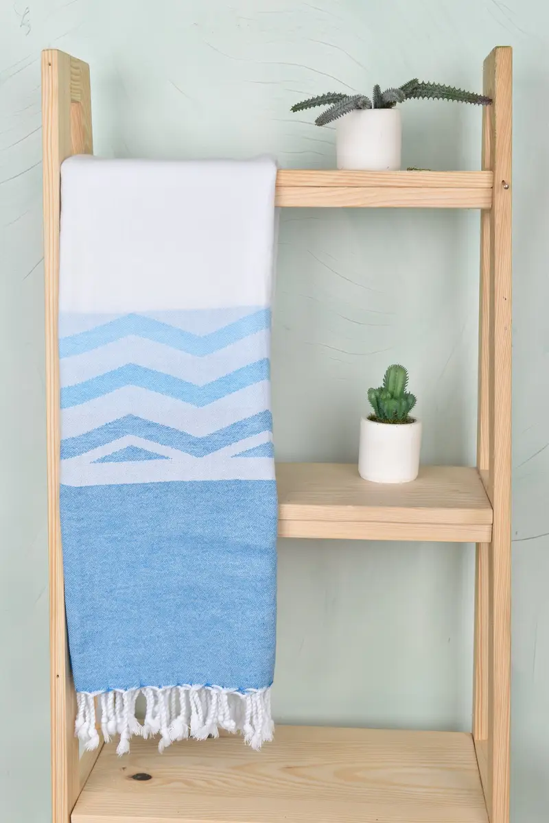 Weaving involves organic cotton and linen fibers, ensuring high absorbency and durability. Characterized by a length of 36 inches and width of 71 inches, the towels weigh approximately 300 grams, with handmade items exhibiting minor variances. Orders can be personalized with embroidery, including names or logos, and must be shipped to physical addresses due to delivery constraints.