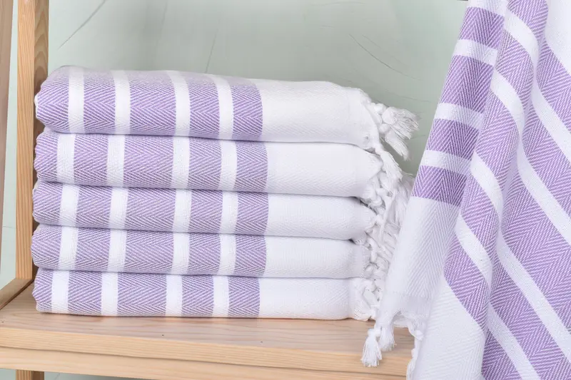 The Turkish Bath Towel is characterized by its organic cotton/linen composition, ensuring high absorbency and breathability. Measuring 40x71 inches, the towel weighs 380 grams, with a slight tolerance of 1-2.5cm due to its hand-woven nature. Orders can be personalized with embroidery, including names, initials, or logos, following a 7-day return policy and a 1-2 day shipping delay for personalized items.