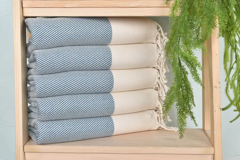 Characterized by superior quality, the monogram beach towel is crafted from organic cotton and linen blend, ensuring superior absorbency and durability. Measuring 40x71 inches and weighing 430 grams, the towel features hand-weaving techniques that allow for minor size variations of up to 2.5 cm. Each piece is crafted meticulously, resulting in a robust and elegant product.