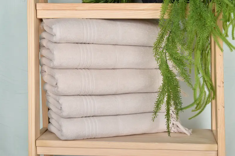 Characterized by its organic cotton/linen composition, this towel provides enhanced absorbency and durability. Measuring 67x36 inches (170.18x91.44 cm) and weighing 400 grams, it presents slight variations due to hand-weaving. Resulting in a unique texture, this dimension tolerance ranges up to 1-2.5 cm.