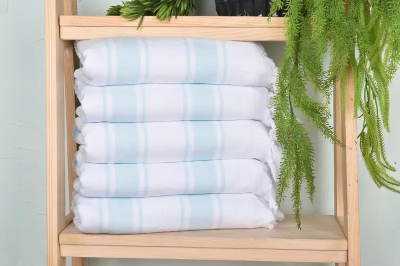 Turkish towels are characterized by their fiber composition, specifically organic cotton and linen, ensuring superior absorbency and durability. Measuring 67x36 inches and weighing 450 grams, these towels are hand-woven on a loom, resulting in slight variations in size and weight. Hand-weaving tolerances may range from 1 to 2.5 cm.