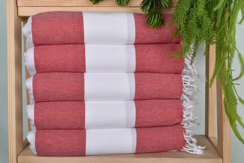 Crafted from organic and recycled cotton fibers, these hand towels are characterized by high absorbency and durability. Ensuring a premium texture, each towel measures 40 inches by 24 inches and weighs 100 grams. Hand-weaving results in a tolerance of up to 1-2.5 centimeters.