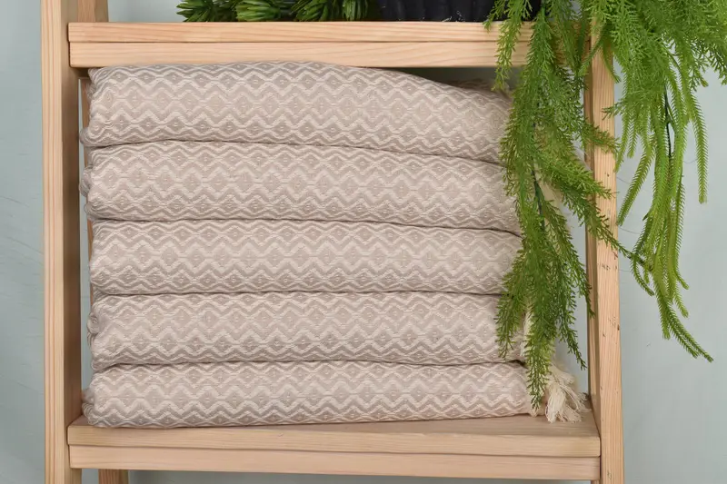 These light beige cotton tea towels, available in sizes of 18x36 inches, are crafted with a combination of organic and recycled cotton, ensuring sustainability without compromising on quality. Characterized by their lightweight nature at 120 grams, these towels provide a delicate balance of absorbency and durability. Each towel is meticulously woven by hand, resulting in slight variations in size and weight, typically within a 1-2.5 cm tolerance range.