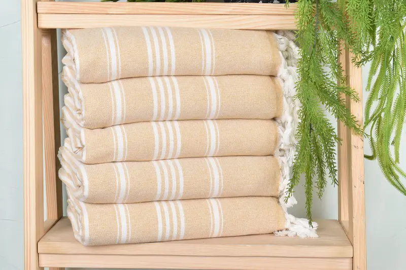 Organic cotton/linen composition ensures superior absorbency and durability, resulting in a high-quality product suitable for various occasions. The towels, measuring 40x71 inches and weighing 430 grams, exhibit slight variations due to hand-weaving, with tolerances of 1-2.5 cm. Customization includes embroidery of names, initials, or logos, alongside pre-shrinking prior to first use. Shipping is expedited via DHL Express or FedEx, with personalized items not eligible for returns or exchanges.