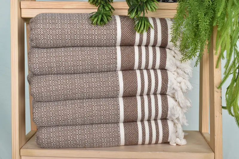 Our hand towels are woven from organic cotton, ensuring a high degree of absorbency and durability. Characterized by their 32"x16" dimensions, these small bath towels weigh approximately 100 grams and are handmade, resulting in slight variations within a tolerance of 1-2.5 cm.