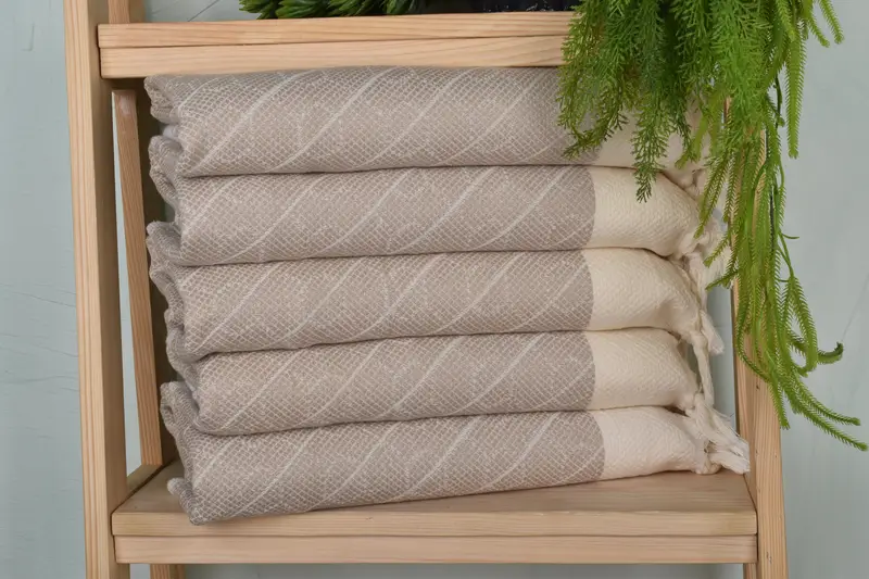 Organic cotton and linen fibers ensure durability and high absorbency, resulting in a versatile small bath towel. Characterized by a size of 36x18 inches and a weight of 120 grams, these towels can vary slightly due to their handmade nature, within a tolerance of 1-2.5cm.