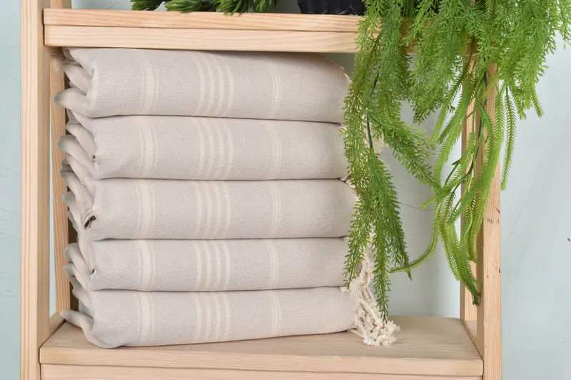 Characterized by a fiber composition of organic cotton and linen, the towels ensure breathability and absorbency, making them suitable for various uses. Dimensioned at 40x67 inches with a weight of 330 grams, these towels are handmade, resulting in minor variations of up to 1-2.5 cm in size and weight. Customers can personalize their towels with embroidery, choosing from a range of fonts and thread colors, with designs including names, initials, or logos.