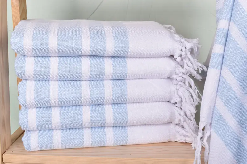 The personalized Turkish towels are characterized by their organic cotton and linen composition, ensuring excellent absorbency and durability. These towels exhibit a hand-weaving technique, resulting in dimensions of 40x71 inches, with a weight of 380 grams. Size tolerances may vary slightly due to their handmade nature, typically within 1-2.5 cm.