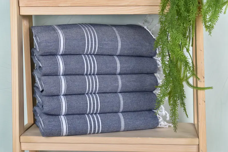 Composed of organic cotton and linen, ensuring durability and breathability, the towels are characterized by their high absorbency and soft texture. Measuring 40x71 inches and weighing 280 grams, these handmade towels might exhibit slight variations due to the hand-weaving process, with tolerances of up to 1-2.5 cm. Customers can personalize their towels with embroidery, choosing names, initials, or logos from a selection of fonts and thread colors, specifying placement and color in their order notes.