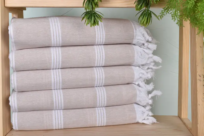 Characterized by exceptional absorbency, the 30"x69" beach towel is woven from organic cotton and linen, ensuring durability and breathability. Weighing 240 grams, the towel's dimensions may slightly vary due to its handcrafted nature, allowing for a tolerance of 1-2.5cm. Resulting in a pre-shrunk textile, it is recommended to wash the towel prior to first use.