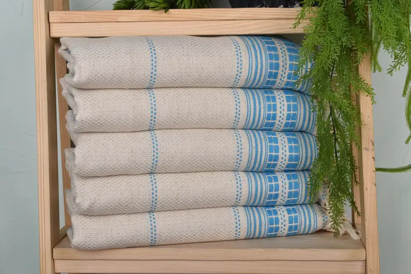 Characterized by its organic cotton and linen fiber composition, the hand towel ensures durability and natural absorbency. Measuring 40x20 inches with a weight of 120 grams, the product accommodates minor variations due to its handmade nature, with tolerances of up to 1-2.5 cm. Resulting in personalized gift options, customers can specify embroidery details such as names, initials, logos, font, and thread color.