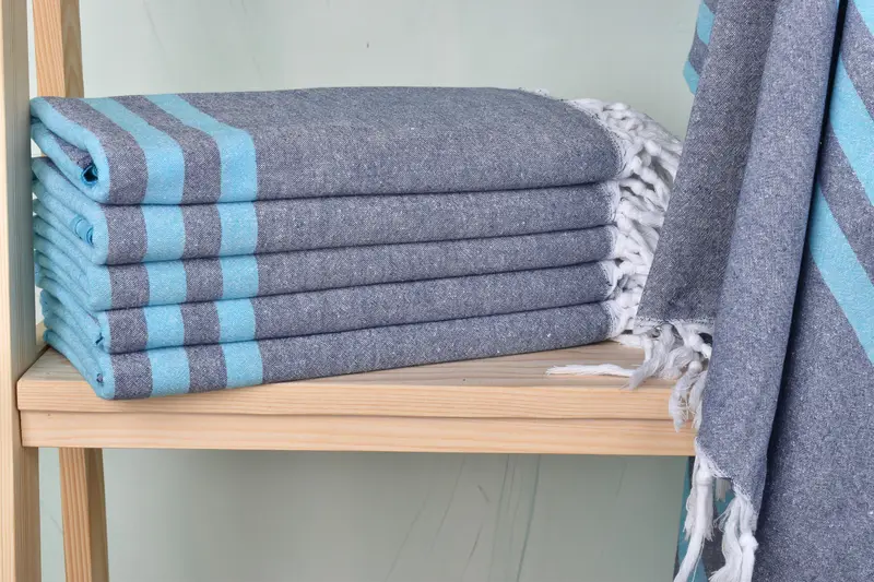 The Turkish towel is composed of organic cotton and linen, ensuring enhanced absorbency and durability. Characterized by a hand-woven construction, the towel measures 36x71 inches and weighs 200 grams, with tolerances of up to 1-2.5 cm due to its handmade nature. Customization options include embroidery of names, initials, or logos, with specified font and color choices. Pre-wash is recommended before first use, and washing can be done at 30 degrees with 600 cycles, using a gentle softener. Shipping is expedited through DHL Express or FedEx, wi...