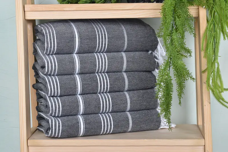 The Turkish towel is meticulously crafted from organic cotton and linen, ensuring superior absorbency and durability. Characterized by its 40x71 inches dimensions and 280-gram weight, each towel exhibits slight variations in size and weight due to its hand-weaving process. Custom embroidery, offering personalization options such as names, initials, or logos, can be arranged with specified font and placement. Towels are pre-shrunk and can be washed at 30 degrees with a little softener. Shipping within the US is expedited through a US warehouse, ...