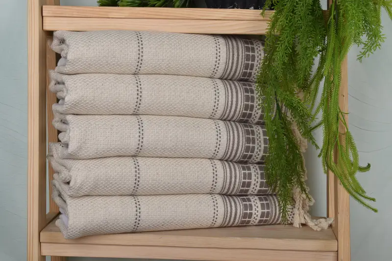 Ensuring a premium quality textile experience, the towel is manufactured from organic cotton and linen, characterized by its soft texture and durability. Measuring 40x20 inches, with a weight of 120 grams, the product maintains a slight tolerance in dimensions due to its hand-woven nature, typically within 1-2.5 centimeters. Personalization options include embroidery of names, initials, or logos, with an emphasis on customization for various occasions.