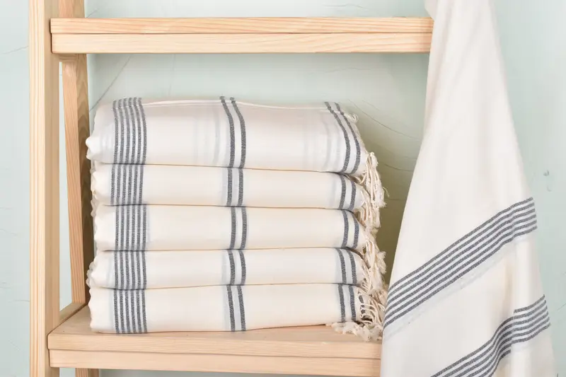 The Turkish Beach Towel is crafted from organic cotton and linen, ensuring a blend of softness and durability. Characterized by its 36x71 inches dimensions and 290 grams weight, the towel allows for minor size variations due to its handmade nature. Each piece undergoes pre-shrinking before shipment, resulting in consistent sizing across orders.