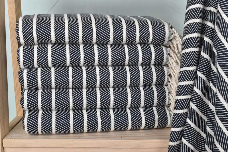 The Turkish Beach Towel is crafted from organic cotton and linen, ensuring superior absorbency and durability. Measuring 40x71 inches and weighing 360 grams, these towels are meticulously hand-woven, resulting in slight dimensional variances of up to 2.5 cm. Custom embroidery options are available, including names, initials, or logos, with a recommended placement at the middle or bottom.