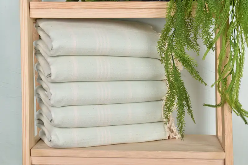 The towels are characterized by their composition of organic cotton and linen, ensuring softness and durability. LengthxWidth measures 40x71 inches with a weight of 300 grams, offering a balance between absorbency and portability. Due to the hand-weaving process, dimensions may vary by a slight margin of 1-2.5cm.