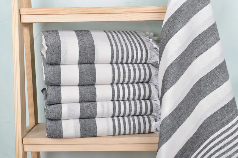 Composed of organic cotton and linen, the towel ensures durability and breathability. Measuring 36x67 inches and weighing 200 grams, each piece exhibits slight variations due to hand-weaving, typically within 1-2.5cm tolerance. Customization includes embroidery of names, initials, or logos, with specific font and placement preferences noted during ordering. Pre-washed and pre-shrunk for optimal use, these towels are shipped within a day using DHL Express or FedEx, with potential delay for personalized items. Returns accepted within seven days p...
