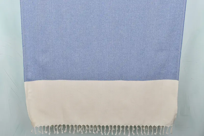 The 36x71 inches Sax Blue Cotton Towel is characterized by its organic cotton and linen composition, ensuring durability and maximum absorbency. Fabric dimensions are specified as 36x71 inches, with a weight of 400 grams. Due to the handmade nature of the product, there may be slight variations in size and weight.