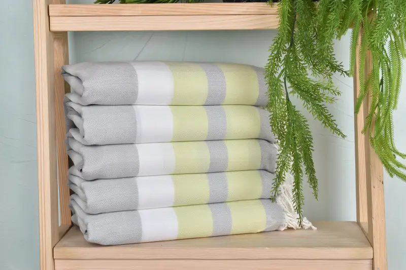 The towels, characterized by their composition of organic cotton and linen, ensure durability and high absorbency. Measuring 40x71 inches and weighing 280 grams, these beach towels are meticulously woven by hand, with dimensions possibly varying by 1-2.5 centimeters due to the artisanal process. Personalization options include embroidery of names, initials, or logos, with detailed pre-order specifications necessary for customization.