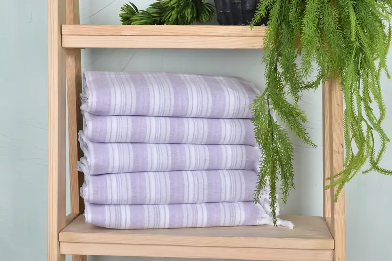 Characterized by its organic cotton and linen composition, this towel ensures superior absorbency and breathability. Resulting in a weight of 200 grams, the dimensions are 70x40 inches with tolerances of 1-2.5 cm due to the hand-weaving process. Furthermore, the towels are pre-shrunk, adhering to care instructions.
