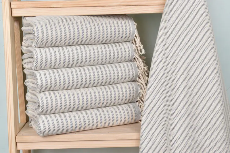 The product consists of a 40x71 inches light gray cotton towel, characterized by its organic cotton/linen fiber composition which ensures superior absorbency and comfort. Each towel, meticulously handwoven on a loom, weighs 340 grams and features slight variations in size and weight due to its handmade nature, with a tolerance of approximately 1-2.5 centimeters. Pre-shrunk and ready for immediate use, these towels offer customization options including embroidery of names, initials, or logos, and can be personalized according to the customer's s...