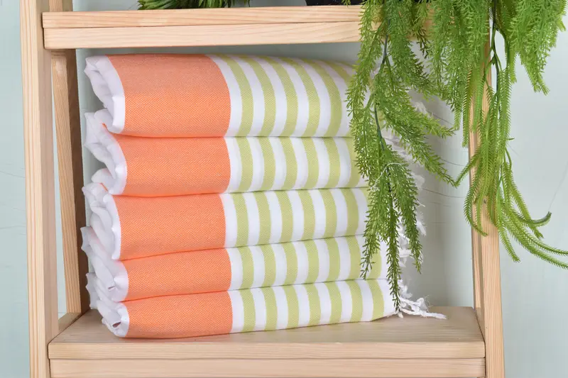 Organic cotton/linen composition ensures durability and breathability, resulting in superior absorbency and softness. Characterized by a 40x71 inches dimension and 300 grams weight, the towels feature a slight variation due to hand-weaving. Ensuring pre-shrink washing, the towels are ideal for multiple applications.