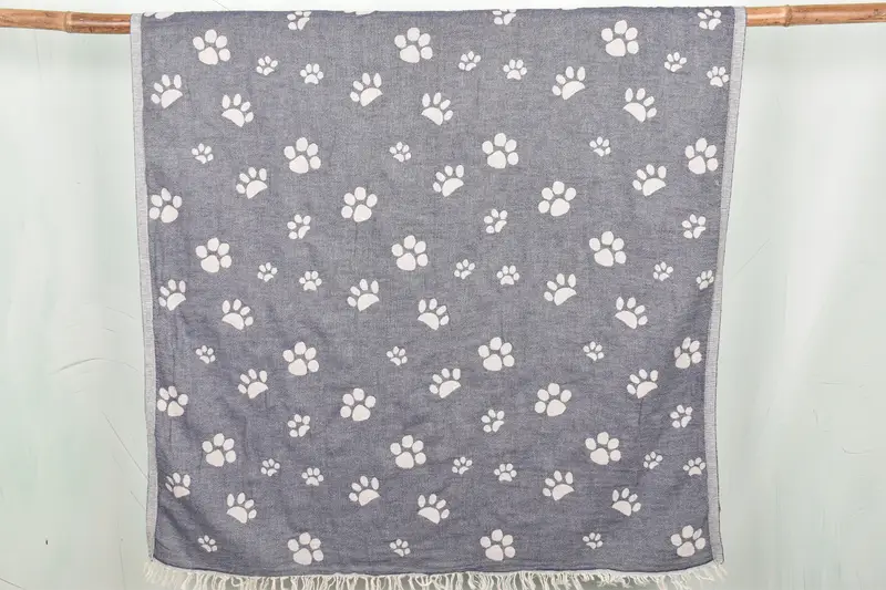 Organic cotton/linen fiber composition ensures durability and breathability, characterized by exceptional absorbency and soft texture. Measuring 36 x 71 inches with a weight of 350 grams, these towels are handwoven, resulting in a slight variation of up to 1-2.5 cm in size and weight. Custom embroidery, pre-shrinking, and shipping terms are detailed, with a 7-day return policy for unpersonalized items and custom policies accessible on the homepage.