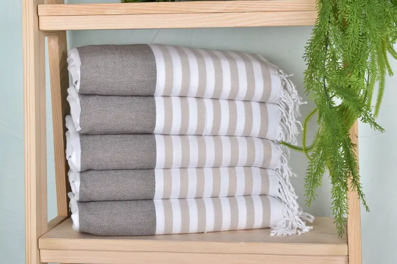Characterized by a sub-category of blankets and throws, the towels showcase a brown-beige striped pattern. Pre-shrunk before shipping, they promise consistency in size post-washing.