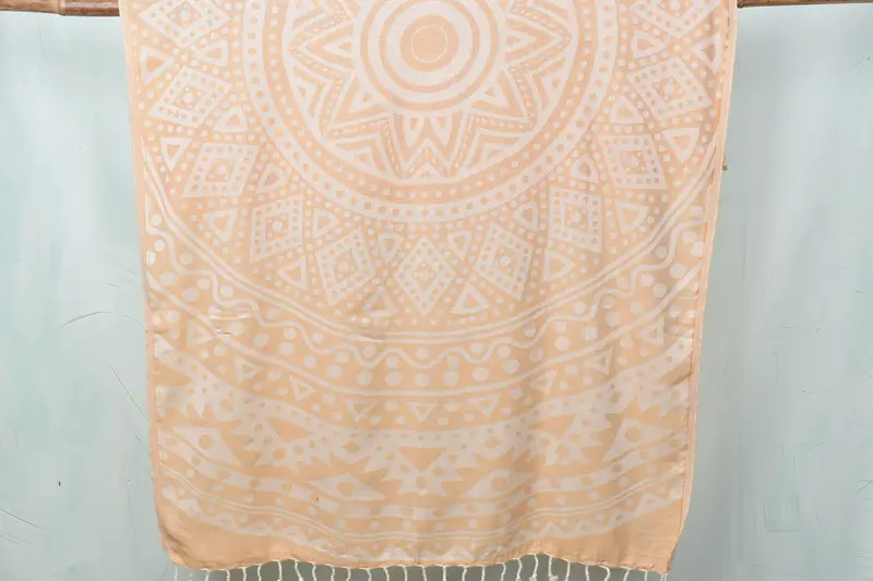The beach towels are composed of organic cotton and linen, ensuring high absorbency and durability. Measuring 40x71 inches with a weight of 300 grams, these towels exhibit slight variations in size and weight due to the handmade nature of their creation. The weaving tolerance allows for deviations up to 1-2.5 cm.
