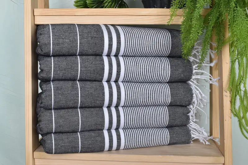 The Turkish Tea Towel is characterized by its organic cotton and linen fiber composition, ensuring a balance between durability and breathability. Resulting in a weight of 120 grams, these towels are meticulously woven by hand, which allows a tolerance of 1-2.5cm in dimensions. The 24"x40" dimensions provide ample coverage for various kitchen tasks.