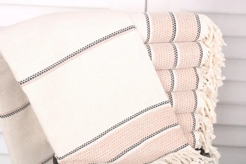 Characterized by a blend of organic Turkish cotton or natural linen, the towel ensures exceptional absorbency and durability. Measuring 36x71 inches (90x180 cm) and weighing 430 grams, this product offers a balance of portability and utility, resulting in a versatile home accessory. Hand-woven with a tolerance of 1-2.5 cm, it promises consistent quality.