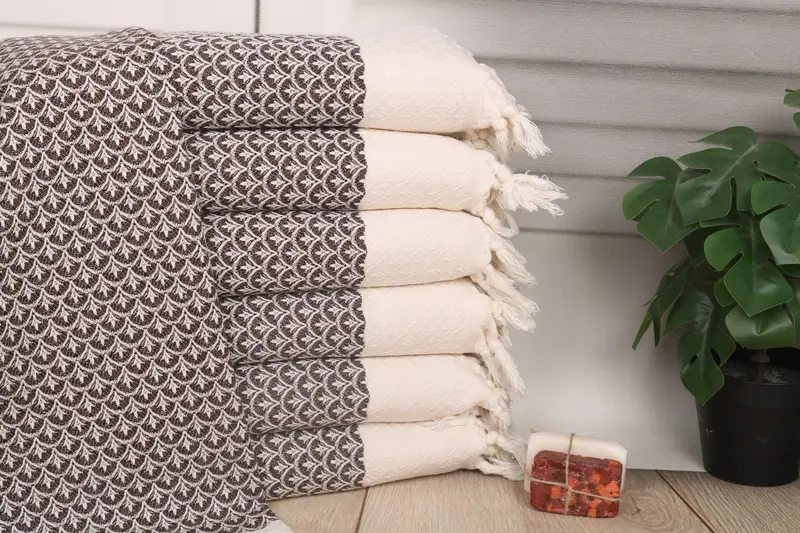 The towels are available in brown with beige accents, providing a versatile addition to kitchen décor or personalized gifts. With each towel carefully crafted, the dimension and weight are consistently maintained across the product range.