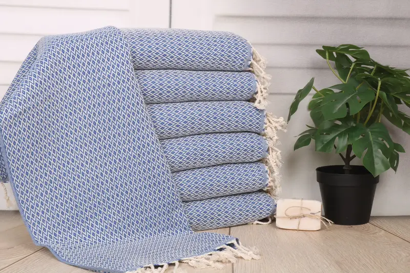 The Diamond Tea Towel is characterized by its fiber composition of organic Turkish cotton or natural linen, ensuring superior absorbency and durability. Resulting in the specified dimensions of 40x20 inches or 50x100 cm and weighing 100 grams, this tea towel provides a soft yet robust fabric. The tolerances for hand-weaving measurements are within 1-2.5 cm.