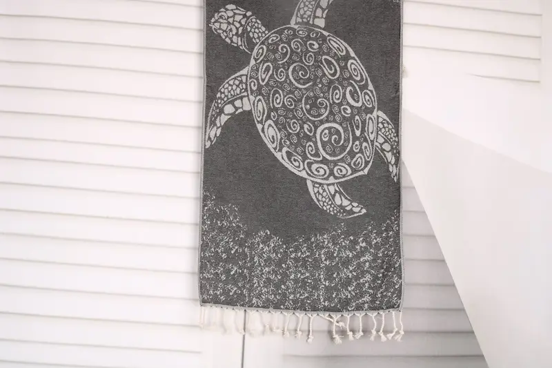 Organic Turkish cotton, if specified, ensures superior absorbency and durability, resulting in a highly functional kitchen or bath towel. The dish towel measures 36x18 inches or 45x90 cm, weighing 120 grams. Hand-weaving tolerances result in slight variations of 1-2.5 cm.