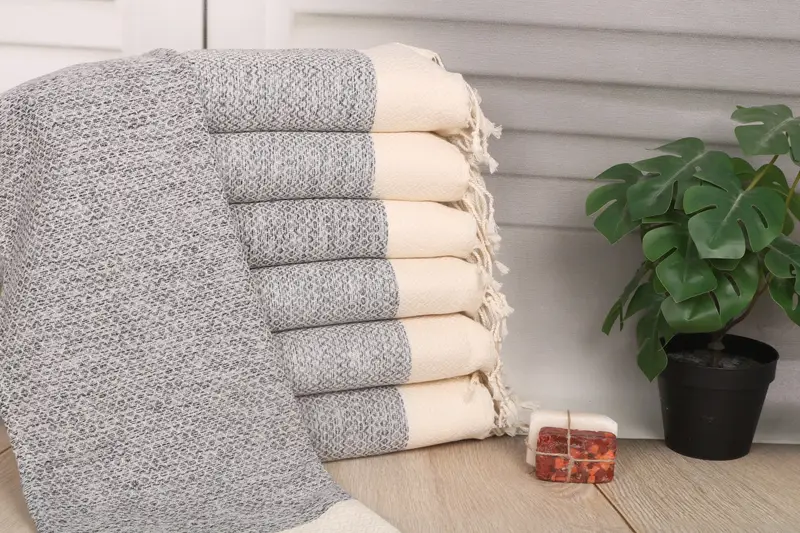 Characterized by premium material quality, the 20"x40" light gray cotton hand towel, composed of organic Turkish cotton or natural linen, ensures superior absorbency and durability. Resulting in an optimal size for diverse uses, the towel measures 40x20 inches or 50x100 cm, weighing 122 grams. Tolerances in hand-weaving allow for slight variations up to 1-2.5 cm. Ensuring personalization capabilities, the towels can be embroidered with specific letters, initials, or logos. Providing international shipping options, packages are delivered within ...
