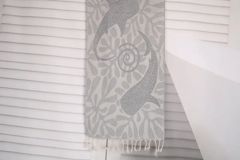 These towels are crafted from organic Turkish cotton or natural linen, ensuring high absorbency and durability. Resulting in an overall weight of 120 grams, the hand towels measure 40x18 inches or 45x100 cm, with a tolerance of 1-2.5 cm for hand-weaving. Embroidery customization is available, and the towels come pre-shrunk, ready for immediate use.
