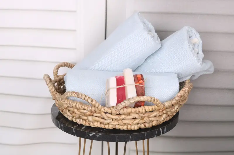 Characterized by superior absorbency, the towels are crafted from organic Turkish cotton or natural linen. Resulting in a lightweight product, the towels measure 40x71 inches or 100x180 centimeters, with a weight of 400 grams. Hand-weaving tolerances for these towels are ±1-2.5cm.